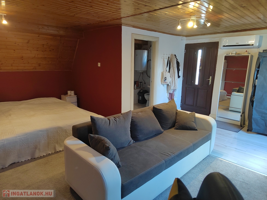 Szegeden a Katona József utcában 80 m2 + 37 m2-es családi ház, 513 m2-es gyönyörű kerttel, tehermentesen eladó. Elosztása: a nagy házban 3 szoba, fürdőszoba, étkező és konyha van, a szigetelt kétállásos garázs felett egy külön lakrész épült, klímával 1 nagy szobával, fürdőszobával és 9 m2-es terasszal. 2025-ben a tetőre napelemek kerültek, az összes nyílászárót 3 rétegűre cserélték, 20 cm-es homlokzati szigetelést, a padláson 30 cm-es szigetelést tettek, új klíma és burkolatok. A garázs mellett 9 m-es tároló, kinti 2 db mosdó és külön zárt tusoló is praktikussá teszi a kerti kikapcsolódást. Udvara főleg térköves, szép dísznövények és fedett külső konyha kemencével, kiülővel. A tömegközlekedés, boltok, óvoda, iskola közel megtalálhatók. A bútorzat alku tárgyát képezi.