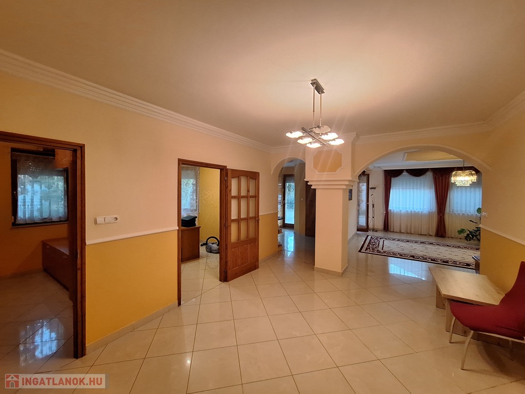 Szeged-Újszeged központ részén, a Holt-Maros közelében, modern, 2000 utáni építsű, egy szintes, szabadon álló (az utcától távolabb elhelyezkedő), 170 nm-es, tágas nappali + négy szobás, jó beosztású, duplakomfortos, egyedi cirkó padló-, plusz cserépkályha (fa), fűtésű, klimatizált családi ház, 1346 nm-es telek, ápolt, igényesen kialakított, szép díszkerttel, dupalgarázzsal, medencével, hangulatos teraszokkal eladó. Több mint ideális otthon.
