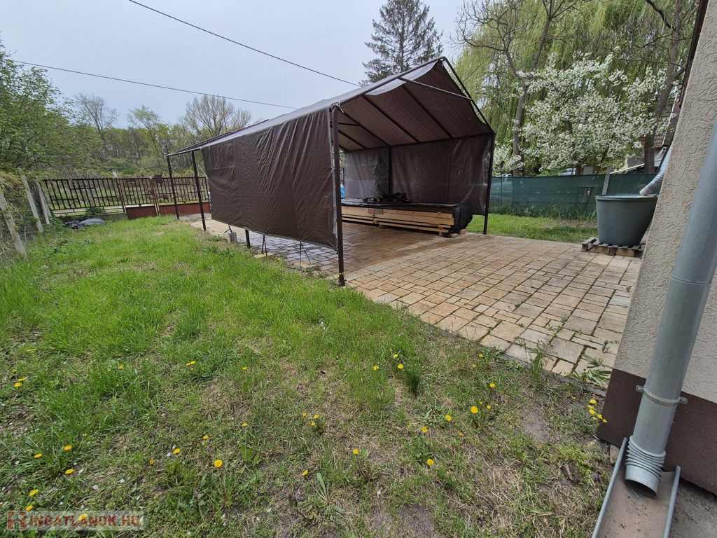 - térkövezett, 2 állásos autóbeálló, mely ponyvával fedett, és a nagy előkertben van