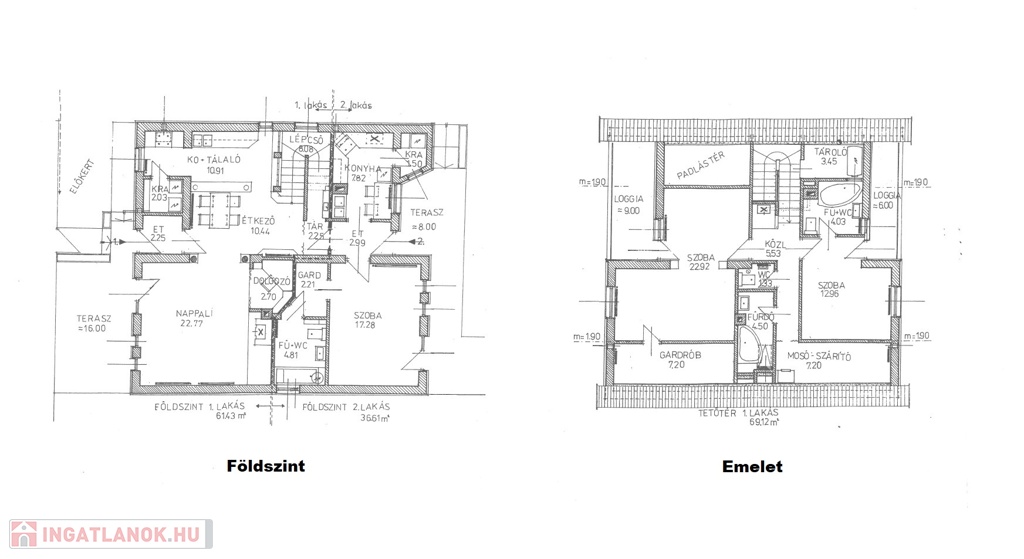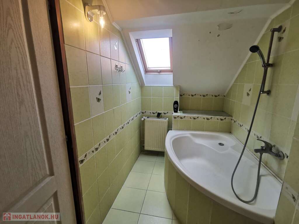 A földszinten és a tetőtérben helyezkedik el a másik, utcafront felől külön bejáraton megközelíthető 131m2 alapterületű lakrész. A földszinten a konyha, kamra, étkező, nappali, az emeleti részen pedig 2 fürdőszoba (ebből az egyik a folyosóról, a másik az udvarra néző hálószobából nyílik), 2 hálószoba és egy mosó-szárító helyiség találhatók.