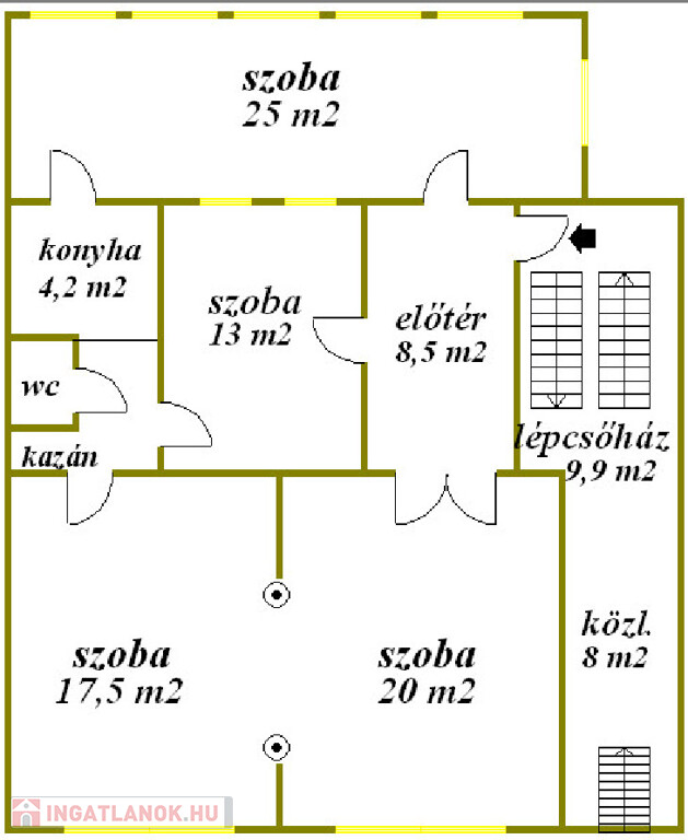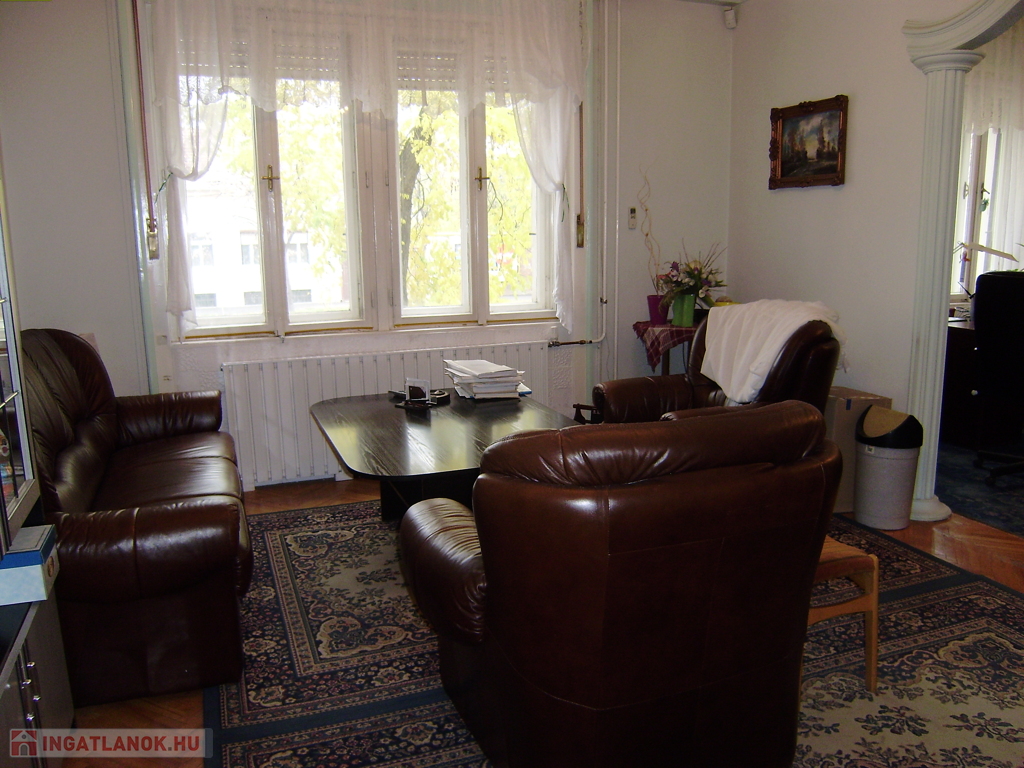 Szegeden a Brüsszeli körúton 100 m2-es, 3 szobás, 1. emeleti, kertkapcsolatos, cirkó fűtésű, klimatizált lakás, 335 m2-es telken (50 %-os használattal), két lakásos házban, tehermentesen, gyors birtokba adási lehetőséggel eladó. Fürdőszobát ki kell alakítani, mert jelenleg irodaként funkcionál. Az ingatlan nemcsak otthonként, de irodának, telephelynek is ideális.